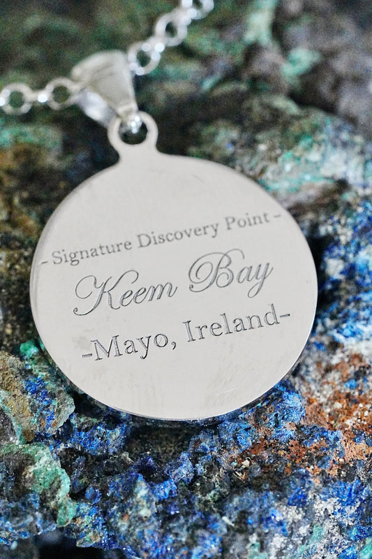 They describe something precious as being close to your heart. Wear one of these exquisite pendant necklaces in that very place to hold a cherished point along Ireland's Wild Atlantic Way close to your heart. From Malin to Mizen; there are 15 Discovery spots ; each celebrated in this range and marked with a hand-painted blue point. The Atlantic Ocean joins our Celtic motherland with the expanse of water our ancestors crossed. It is affectionately known as "the pond"; so strong are the ties that bind it to the USA.